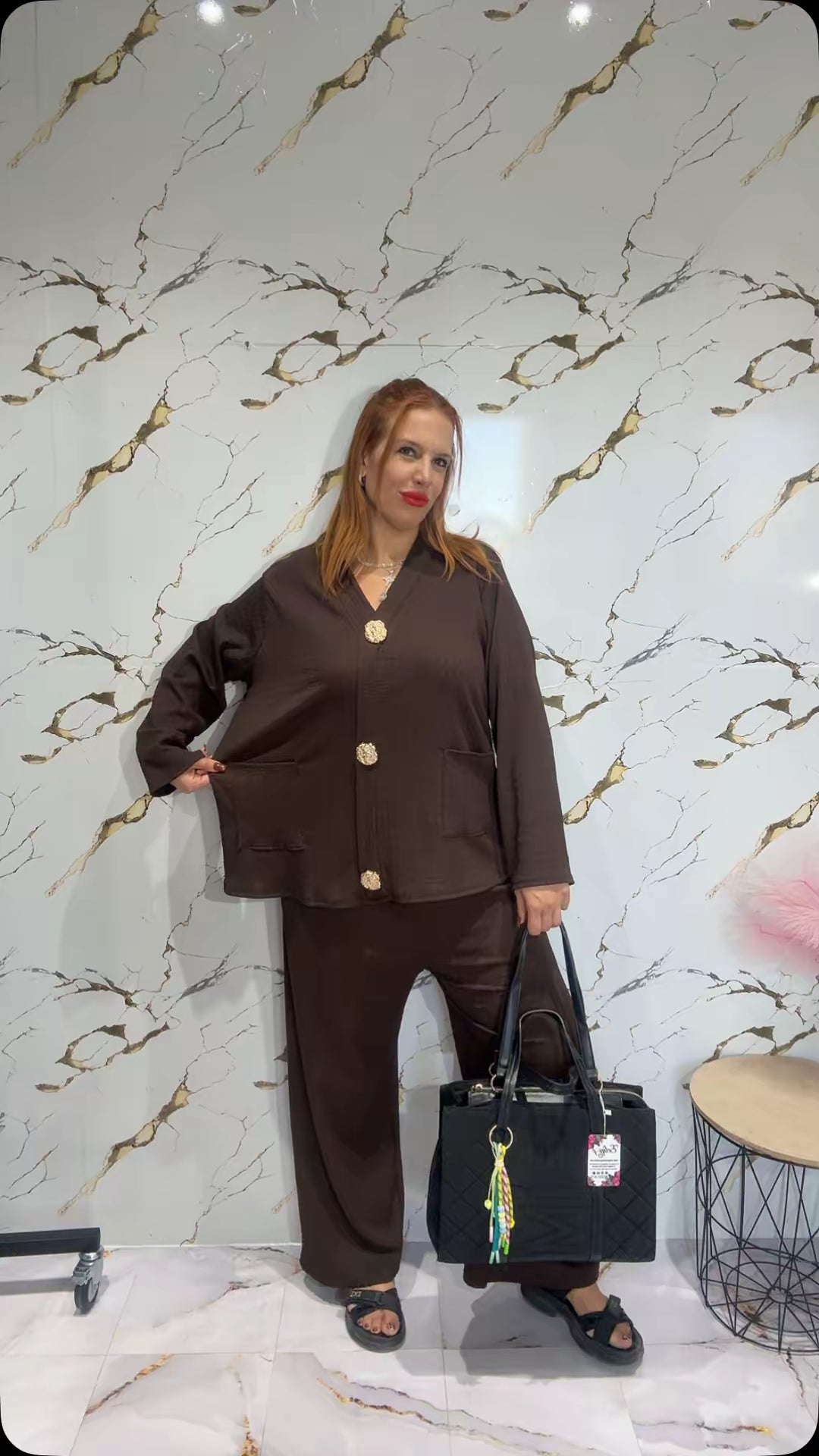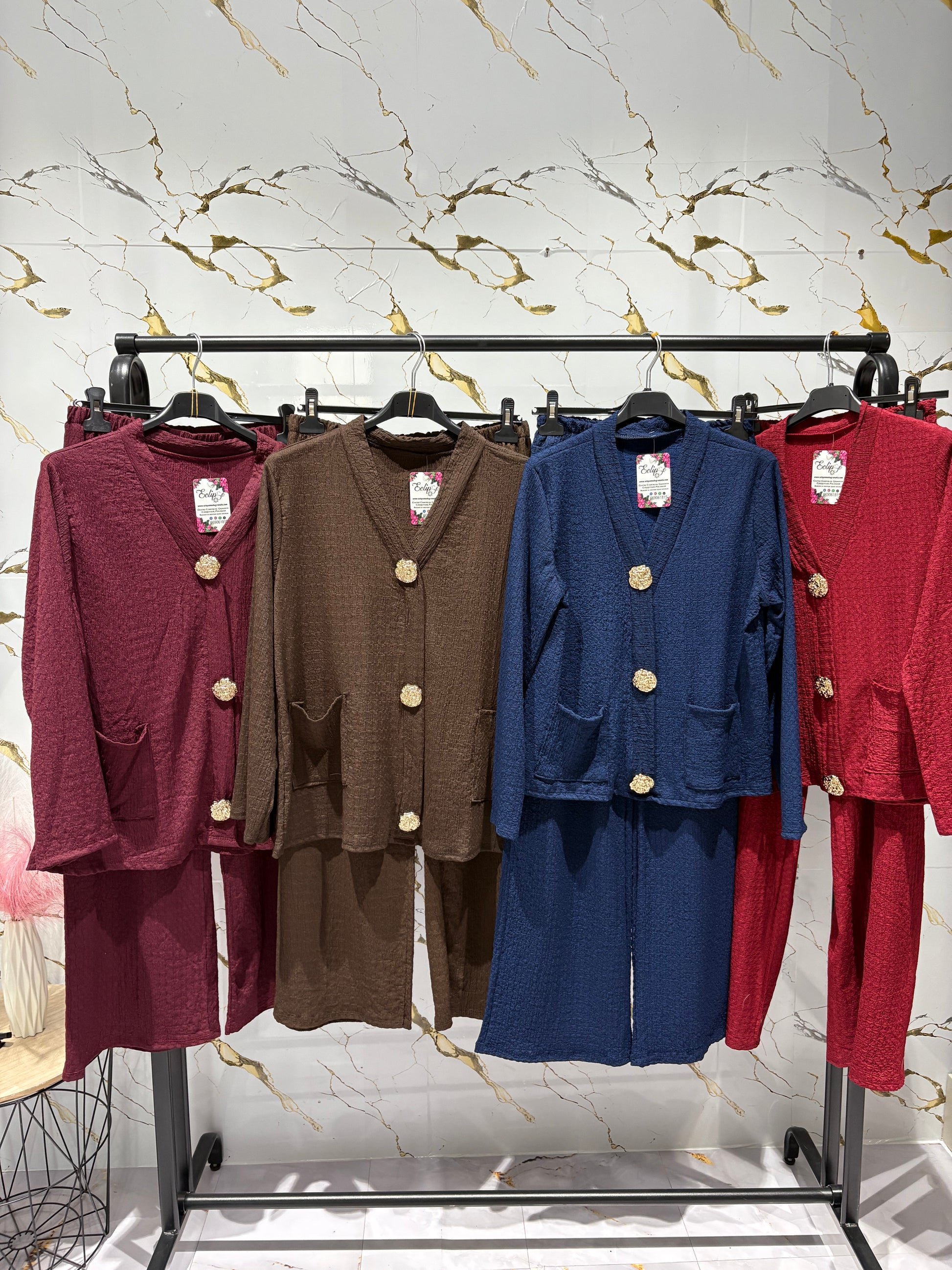Conjunto tejido crep con maxibotones